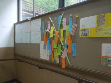 七夕のかざりを階段掲示板に掲示しています。