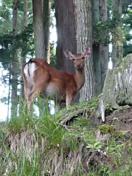 施設内でシカと出会いました。しっかりポーズをとってくれていました。