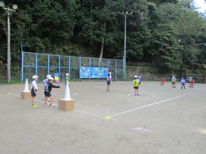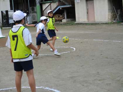 2年生〜4年生の合同体育では、サッカーやけりあそびをしています。