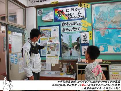 ★完成した新聞について、校長先生から直接ほめられて嬉しそうにする姿もありました。
