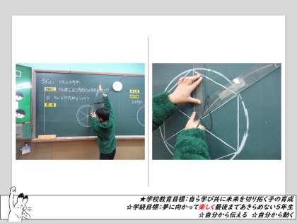 ★自分の考えを三角定規やチョークを用いて説明する姿もありました。