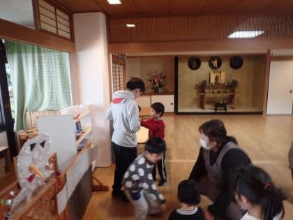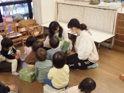 絵本を読んだり、宝探しをしたりして園児さんと交流をしました。