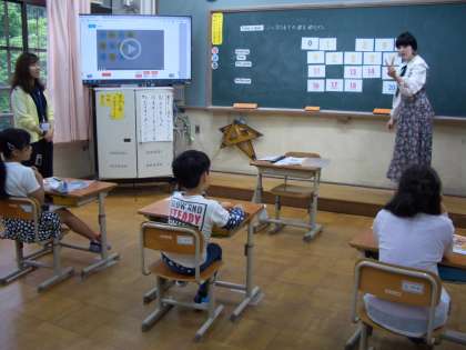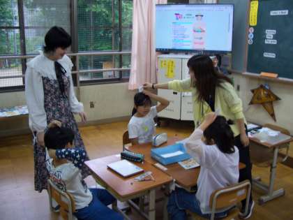 5月16日2時間目、ALTの先生と一緒に外国語の勉強をしました。