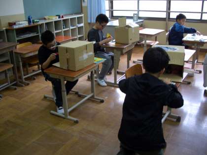 箱の中に、自分が考えた世界をつくりあげていきます。