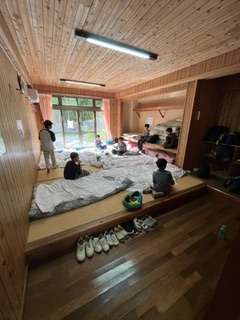 冒険の森の活動を終え、就寝準備をしています。お風呂の時間まで、部屋でゆっくりしています。