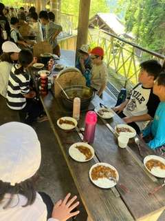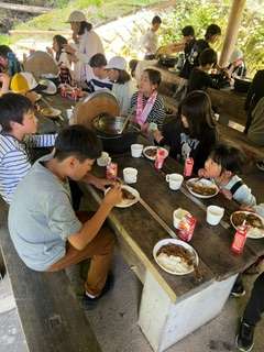 みんなで作ったカレーは格別です。「おいし〜!」「おかわりしよ」の声が飛び交いました。