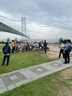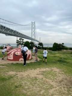 明石海峡大橋をバックに全員で写真を撮りました。少しの時間ですが、橋を見ながら楽しみました。