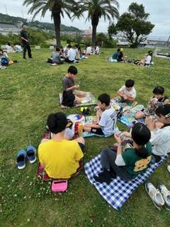 震災記念公園での見学を終え、昼食を食べています。ほとんどバスに乗っていたのに、お腹ペコペコのようです…。元気な証拠ですね!