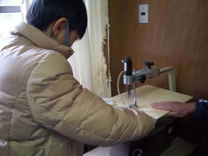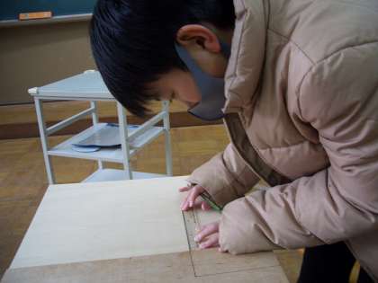 一枚の板から仕上がりの形を思い浮かべて、何に使うか形や図柄をデザインし、完成までの見通しを立てて組み立てていきます。