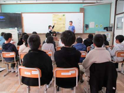 3月6日(木)市原野小学校に登校し、6時間目まで授業を受け、下校しました。1時間目の音楽では、友だちの声を聞き、上のパートと下のパートにわかれて歌いました。4時間目の外国語では、たくさんの友だちと英語で質問し合いました。給食は、クラス全員で輪になって食べました。食べ終わった後は伝言ゲームをしました。5時間目は総合的な学習の時間で、「わくわくワークランド」の発表を聞き、鞍馬の5年生は、「鞍馬の魅力発信隊」を発表しました。