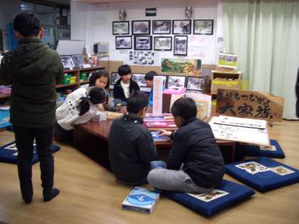 運動場が使えず、子どもたちは総合学習室で遊んだり、
