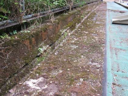 プールが山の中にあるため,苔やたくさんの草が茂ります。