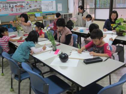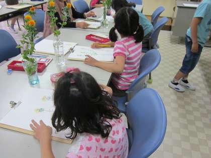 みんな,きれいな花をよく見て,ていねいに描きました。