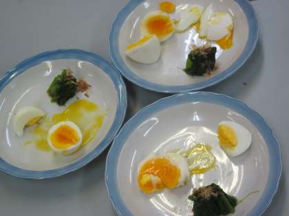 ゆで卵とほうれんそうのおひたしを作ろう。