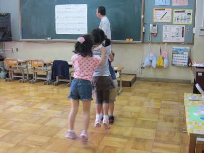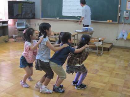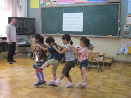 「しろくまのジェンカ」を歌ったり,音楽に合わせて楽器でリズム打ちをしたり,ジェンカを踊ったりします。