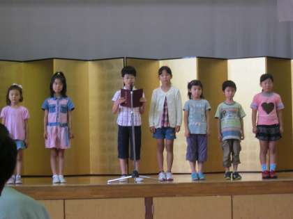 しっかりお祝いの言葉を述べ,かわいい鞍馬子ども音頭を披露しました。