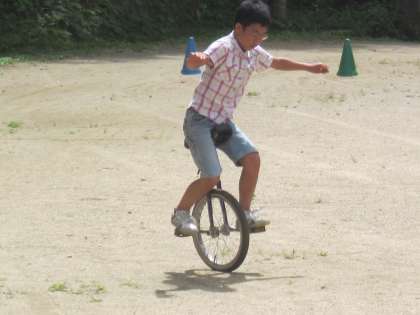夏休み明けの最初の日に,一輪車に乗れるようになりました。