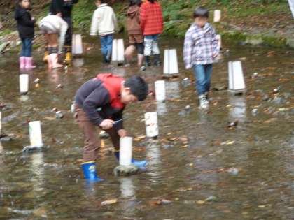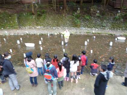 子どもたちのもみじ灯篭の制作,貴船川への設置にお世話いただきました地域・保護者の皆様方ありがとうございました。