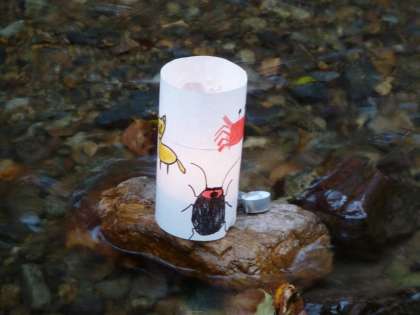 子どもたちが作った灯篭で貴船川が幻想的な川になりました。