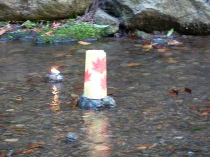 ライトアップ「貴船もみじ灯篭」開催の前日,11月9日(金)に子どもたちが作った灯篭を貴船川で試験点灯しました。
