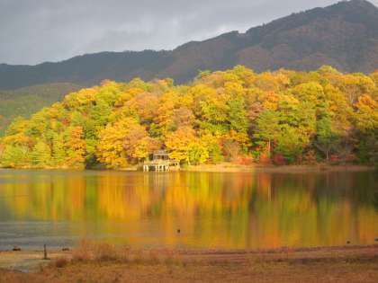 子どもたちは,紅葉で美しい宝ヶ池の周回コースを走りました。