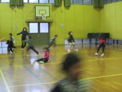 また,中間休みや昼休みにはドッジボールやなわとびなどをして児童といっしょにいっぱい遊んでいました。