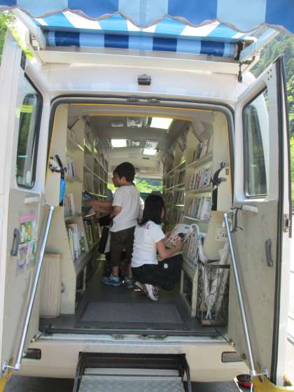 2 わずかな時間だけれど,車内で真剣に本を探す子