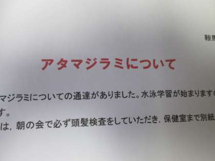 ご家庭でもお子達の頭髪について,観察していただきますよう
