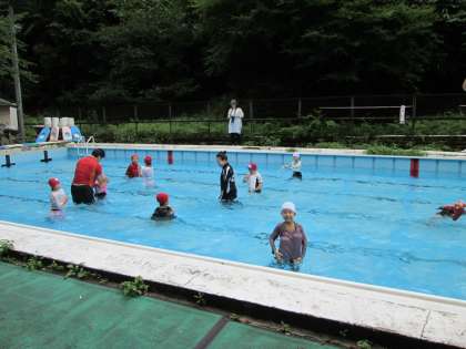 今日の水泳は,衣服を着ての活動でした。