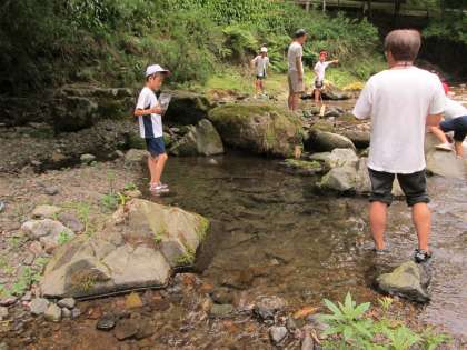 仕掛けた後は,川観察と川遊びです。