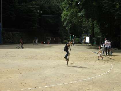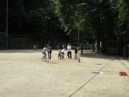竹馬片手に一輪車…等