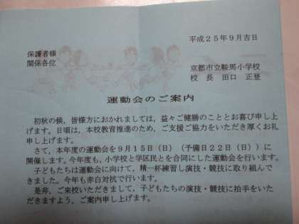 本日予定されておりました運動会ですが,