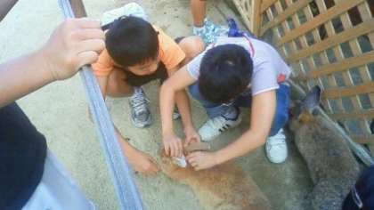 浜辺で魚と過ごしたあとは,淡路ファームパーク・イングランドの丘へ行きました。コアラ館を見学したり,ふれあい広場でウサギに触ったり,動物とのふれあいを楽しみました。