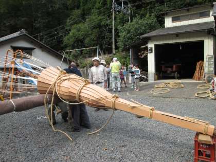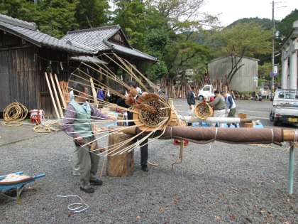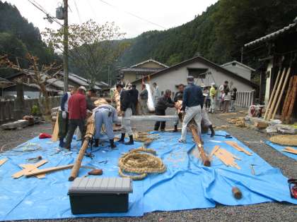 大きな松明が,このように皆さんの手作業で作られるのを見て,