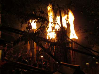火の粉が天を焦がすようです。