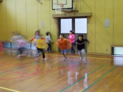 さあ,中間ランニングだ,と思った時に雨が降りだしました。ランニングは中止になり,子供たちは体育館で遊びました。