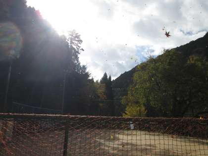 山から大量の落ち葉が飛んできました。