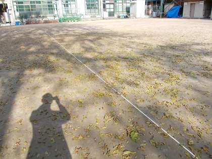 いろいろな木が順に葉っぱを落としていきます。ムクの木はほば全部葉が落ちて,今はフジの葉が落ちてきます。管理用務員が毎日,そうじしております。
