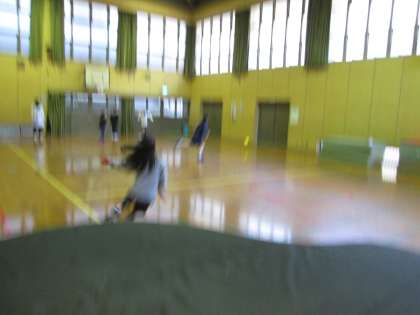 冷え切った体育館で,各自走りまわっていました。