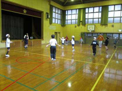 体育館で短縄・長縄です。
