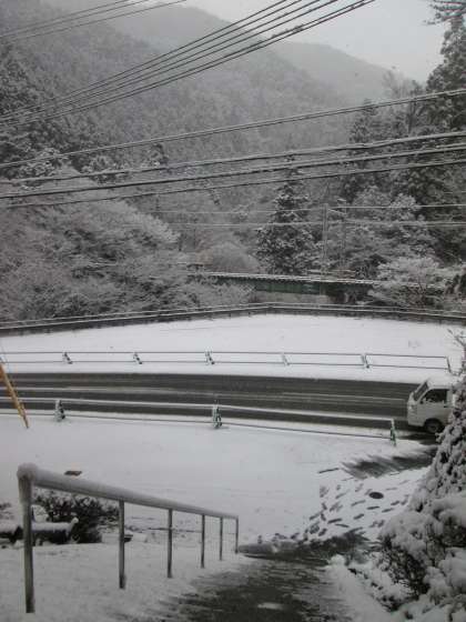 昨夜からの雪が断続的に降り積もっています。