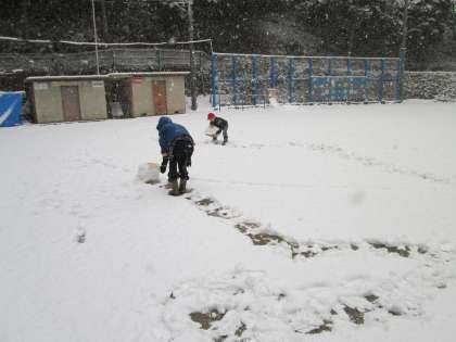 学校のまわりは,白一色の雪景色になっています。中間休みに「雪だるま作ろう!」と元気に飛び出していく子どもたち。雪はまだまだ,降り積もりそうです。