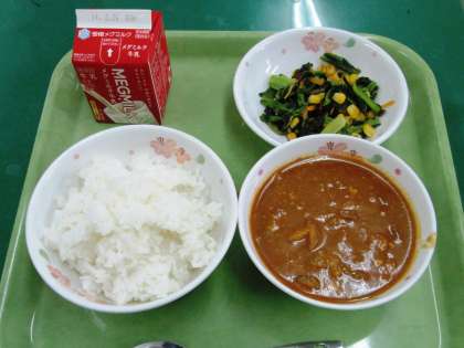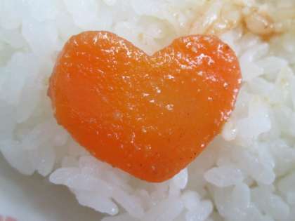 今日の給食はチキンカレーでした。ハート形のにんじんに,子どもたちは大喜びです。