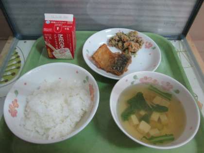 今日の給食は,ごはん・牛乳・