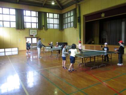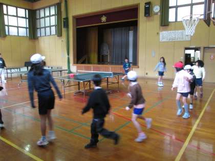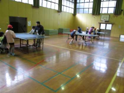 卓球台を出し,ネットを張り,ランニング・準備体操をしました。