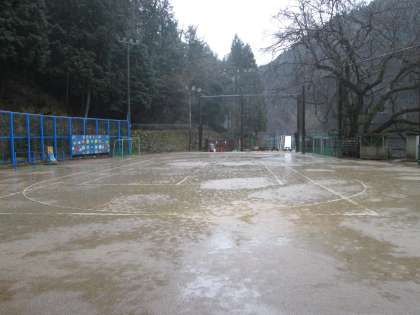 運動場もすっかり水浸しです。