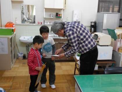 1年生が学校探検をしています。校内を回って行って,行った部屋でシールを貼ってもらいます。去年は1年生がいなかっただけに,教職員の喜びはひとしおです。