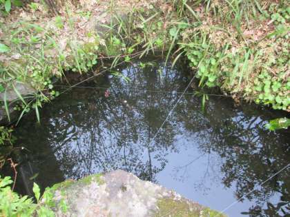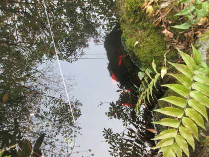 今朝は金魚が池の表面付近を泳いでいます。