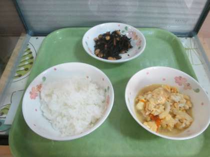 ごはん・あげたま煮・ひじき豆です。