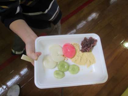 三色だんごの完成です。